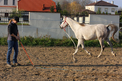 Grace niestety nie tak szybko, jak bym chciała, bo właściciel stajni mnie nie poinformował, że koń zaczął kuleć podczas mojej nieobecności. Więc od wyraźnej kulawizny jakiś tydzień. Leczymy się już od końca września, po drodze było już całkiem dobrze, ale jak tylko koń ma więcej ruchu, to kulawizna wraca.