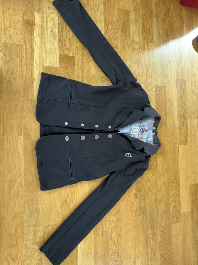 Sprzedam frak Fouganza granatowy dla dzieci w rozmiarze 12 lat (ja sama startowałam w nim mając 13/14 lat) był on używany na kilku zawodach ale jest w stanie bardzo dobrym. Ten konkretny model nie jest już dostępny na rynku ale podobne modele kosztują 150-200 zł, ja sprzedam za 90 zł ale mogę trochę zejść z ceny.