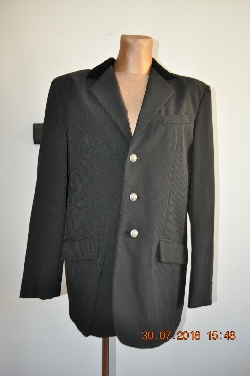 Sprzedam nowy męski frak firmy Harry's Horse w rozmiarze 56. Piękny aksamitny kołnierzyk. Jedna ozdobna kieszeń na piersi i dwie z klapkami kieszonki na przodzie. Frak zapina sie na trzy ozdobne guziki. Frak bardzo efektowny.