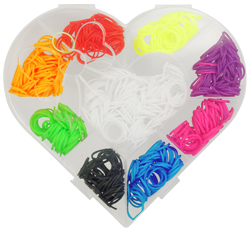 kolorowe gumki do grzywy zapakowane w pudełeczko w kształcie serduszka