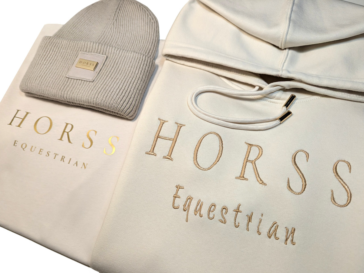 Na przedzie eleganckie, metaliczne logo Horss Equestrian.