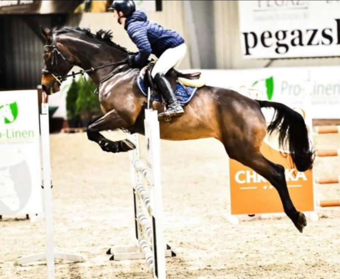 Mamy ją 2 lata, w tym czasie doprowadziła mnie z konkursów 80 do 120. W lipcu wygrałyśmy ogólnopolskie P1. Jest to idealny koń dla dziecka i do wprowadzenia w sport, z przesiadki z kucyka. Razem zdaliśmy konkurs licencyjny z wynikiem 2,5pkt na styl, boj oraz soj.