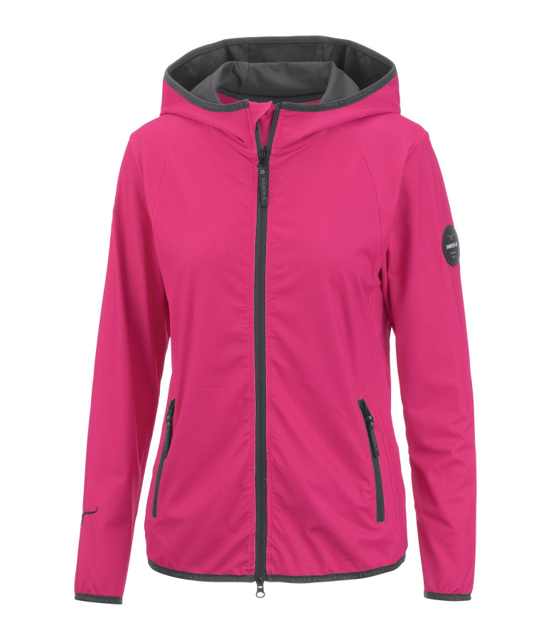 Kurtka z kapturem, oddychająca i zapewniająca dużą swobodę ruchów. Wysokiej jakości materiał elastyczny ma właściwości izolacyjne, jest odporny na brud, wodę i wiatr, a przy tym niezwykle lekki. 2 kieszenie zapinane na zamek i zamek dwukierunkowy.