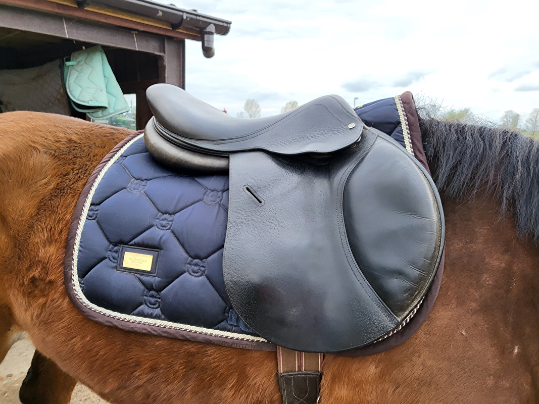 Świetne francuskie siodełko skokowe close contact w rozmiarze 17,5(wypada małe, jak to francuzy)Wymiary na zdj.