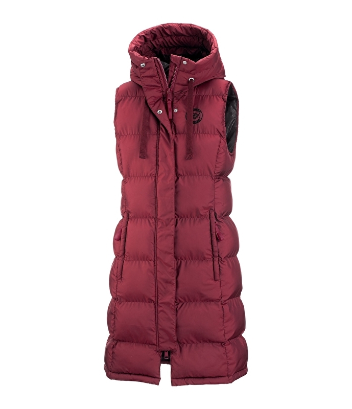 Długa kamizelka jeździecka z miękką wyściółką z imitacji puchu. Bardzo wysoki, regulowany, a także wyściełany kaptur, który można przypiąć z tyłu. Ukryty dwukierunkowy zamek błyskawiczny z przodu, 2 ukryte kieszenie na zamek z przodu wyłożone miękkim polarem. Długie, podszyte rozcięcie do jazdy konnej z zamkiem na plecach, wysokiej jakości haft Felix Bühler na piersi. 100% poliestru.