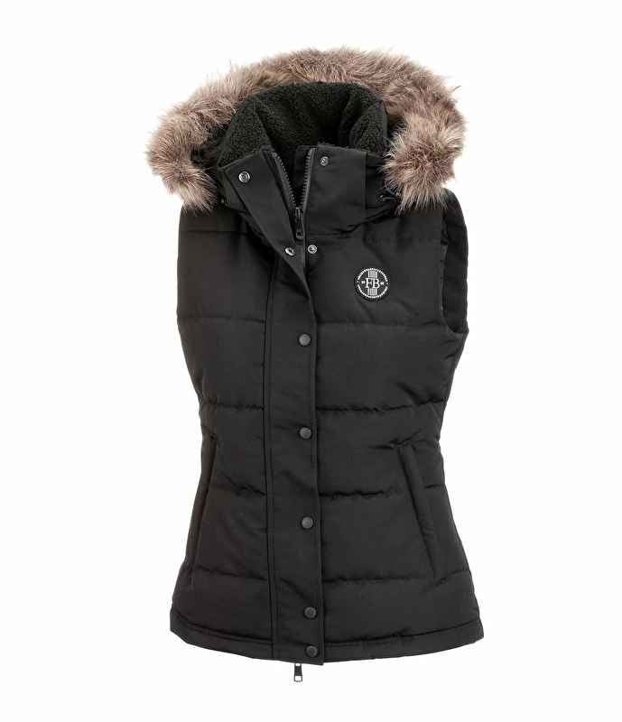 Wysokiej jakości dopasowana kamizelka jeździecka z wypełnieniem z miękkiej imitacji puchu. Kryty 2-kierunkowy zamek błyskawiczny z przodu, 2 kieszenie z przodu zapinane na zamek i naszywka Felix Bühler na piersi. Kaptur z podszewką z miękkiego pluszowego polaru i odpinanym kołnierzem ze sztucznego futra można regulować i zdejmować za pomocą zamka błyskawicznego. 100% poliestru.