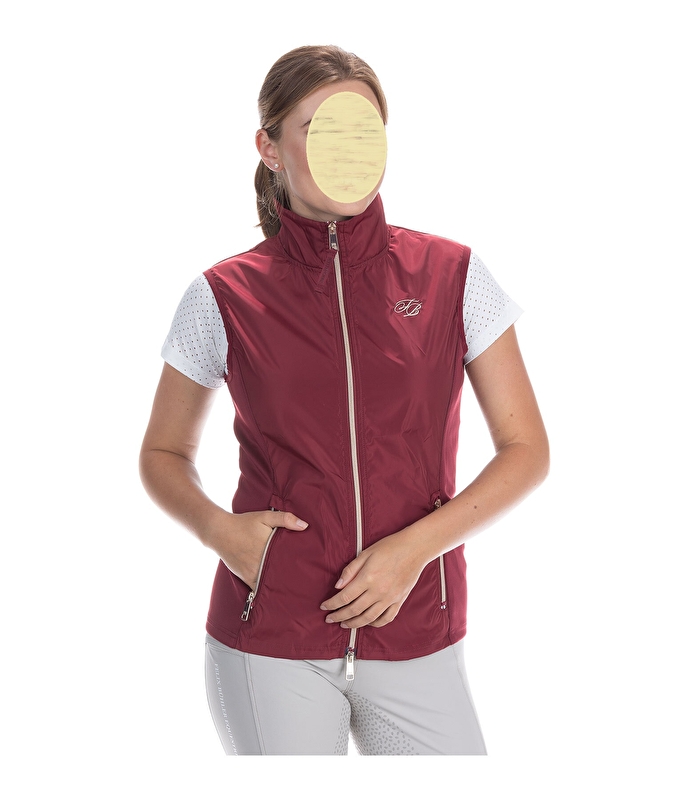Lekka, kobieca kamizelka jeździecka wykonana z wiatroodpornego, błyszczącego materiału i elastycznego materiału stretch po bokach, co zapewnia optymalną swobodę ruchów i idealne dopasowanie. Wysoki kołnierz, podszyty dwukierunkowy zamek błyskawiczny z przodu, 2 przednie kieszenie zapinane na zamek i haft Felix Bühler na piersi. Przód: 100% poliester, wstawki stretch: 95% poliester, 5% elastan.