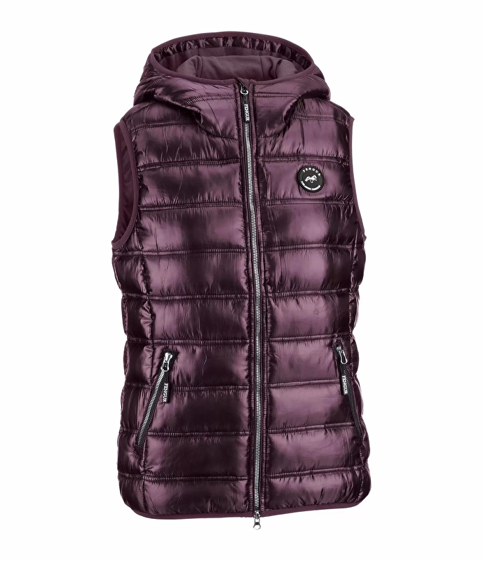 Wygodna kamizelka wykonana z błyszczącego nylonu. Z kieszeniami na suwak i kapturem. Nowoczesna naszywka z logo na piersi. Wiatroodporny materiał. 100% nylon.