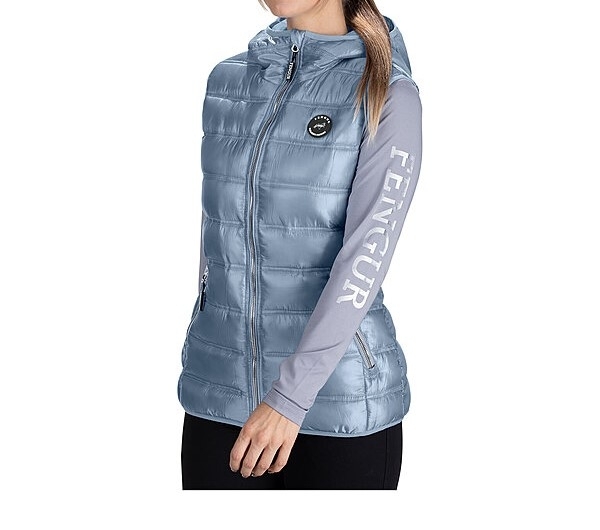 Wygodna kamizelka wykonana z błyszczącego nylonu. Z kieszeniami na suwak i kapturem. Nowoczesna naszywka z logo na piersi. Wiatroodporny materiał. 100% nylon.