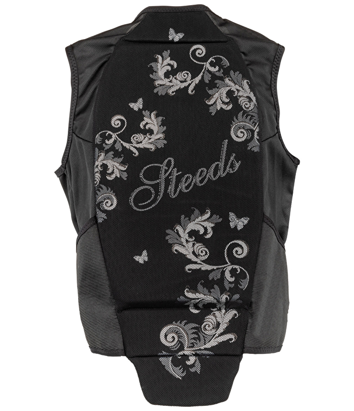 Kamizelka ochronna Steeds XF II Butterfly z świetnym dopasowaniem i elastycznym elementem piankowym w dolnej części kręgosłupa dla większego komfortu podczas siedzenia w siodle. Ochraniacz pleców składa się z wielowarstwowej pianki i jest zgodny z normą EN 1621-2. Łatwe mocowanie kamizelki ochronnej pleców poprzez zapięcie na zamek błyskawiczny i pas biodrowy. Gumowane mankiety po wewnętrznej stronie kamizelki zapobiegają jej zsuwaniu się. Dodatkowo ta kamizelka ochronna na plecy posiada lekkie ochraniacze klatki piersiowej i żeber, które w przeciwieństwie do klasycznych kamizelek ochronnych nie ograniczają swobody ruchów. Tkanina zewnętrzna: 15% elastanu, 85% poliestru. Podszewka: 100% poliester.