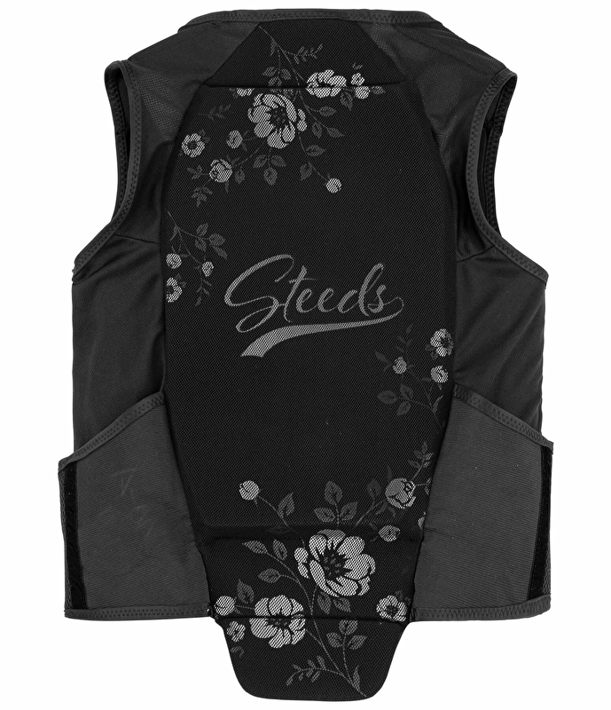 Kamizelka ochronna Steeds XF II Butterfly z świetnym dopasowaniem i elastycznym elementem piankowym w dolnej części kręgosłupa dla większego komfortu podczas siedzenia w siodle. Ochraniacz pleców składa się z wielowarstwowej pianki i jest zgodny z normą EN 1621-2. Łatwe mocowanie kamizelki ochronnej pleców poprzez zapięcie na zamek błyskawiczny i pas biodrowy. Gumowane mankiety po wewnętrznej stronie kamizelki zapobiegają jej zsuwaniu się. Dodatkowo ta kamizelka ochronna na plecy posiada lekkie ochraniacze klatki piersiowej i żeber, które w przeciwieństwie do klasycznych kamizelek ochronnych nie ograniczają swobody ruchów. Tkanina zewnętrzna: 15% elastanu, 85% poliestru. Podszewka: 100% poliester.