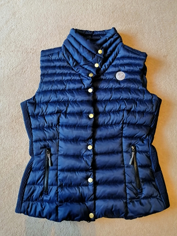 Bardzo ciepła, sportowa kamizelka jeździecka ze ściągaczami po bokach.