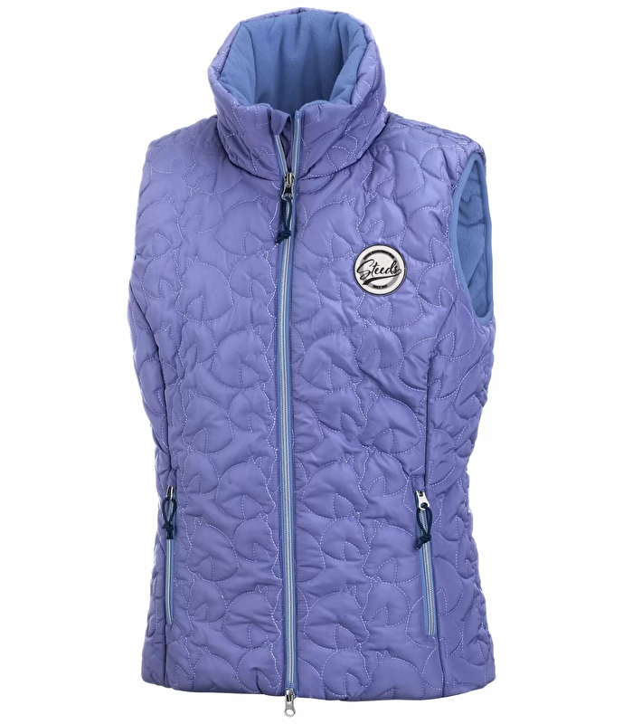 Nowoczesna, ocieplana kamizelka dla dzieci z kontrastowym wzorem pikowania w końską głowę. Dwukierunkowy zamek z przodu, 2 wpuszczane kieszenie z zamkiem błyskawicznym, naszywka z logo na piersi. Wysoki, miękko wyściełany kołnierz.