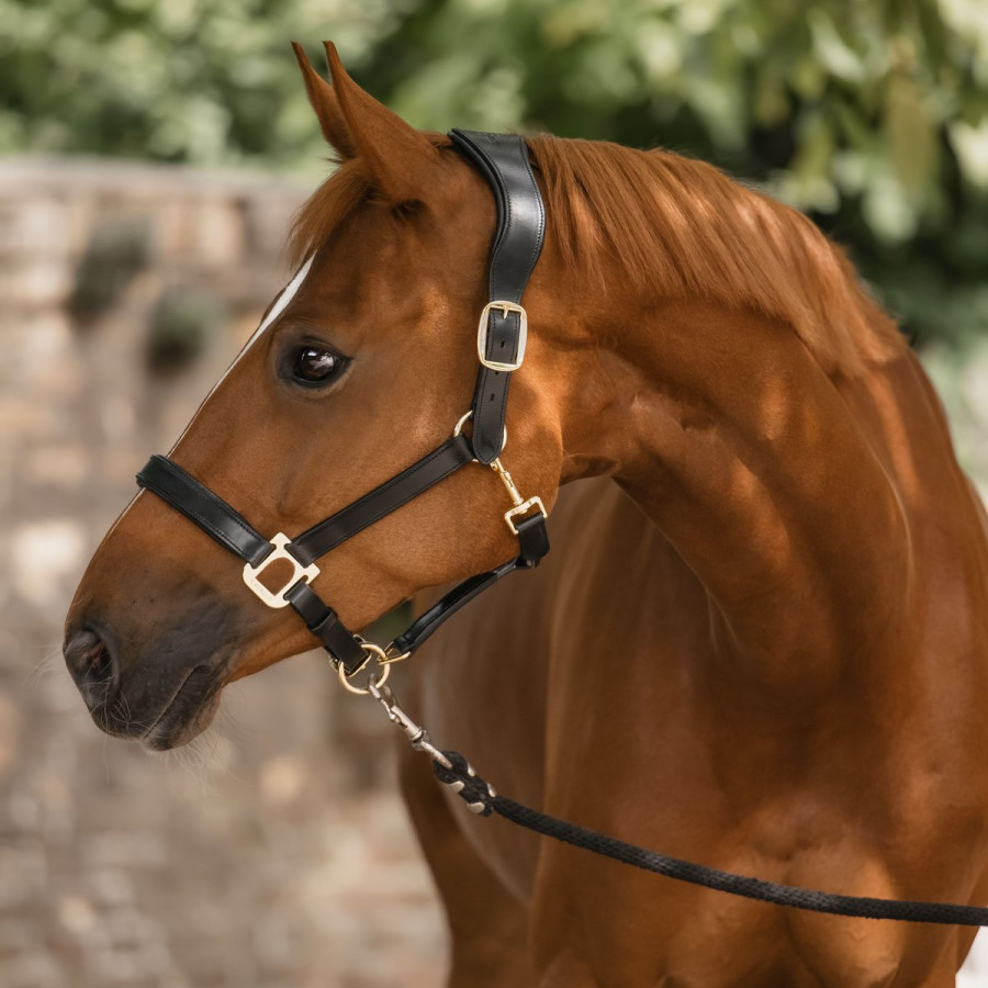 Kantar czarny Cavallo. Jest w 100% skorzany. Miekko poszyty na potylicy i nosie. Posiada piękne złote okucia co nadaje elegancji temu kantarowi. Potylica jest anatomiczna. Regulacja z dwóch stron oraz na dole. Kantar nowy z metką. Jeszcze z dodatkowymi ochronkami . Cena katalogowa 420 zł