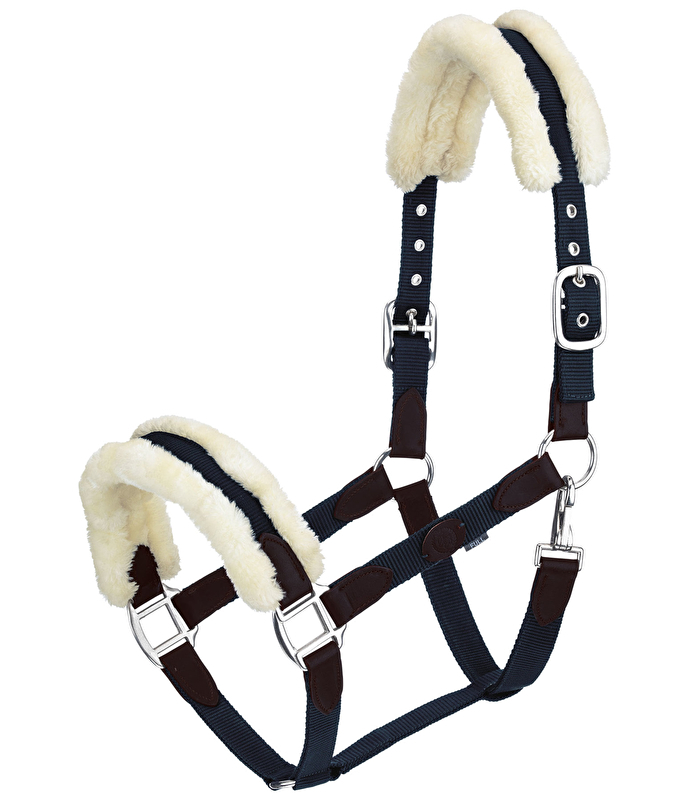 Wysokiej jakości kantar z miękkim podszyciem z polaru na potylicy i nachrapniku oraz eleganckimi wykończeniami z olejowanej, prawdziwej skóry. Dwukrotnie regulowany rozmiar na pasku na szyję. Okucia w kolorze srebrnym.