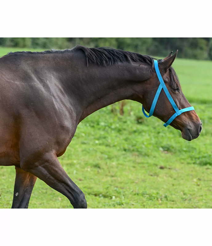 Lekki kantar do pasów bezpieczeństwa na wybiegi i pastwiska, całkowicie bez metalowych okuć i sprzączek, które mogłyby spowodować obrażenia. Z prostym zapięciem na rzep na pasku getra do szybkiego zakładania i zdejmowania. Zabezpieczający rzep można łatwo otworzyć w sytuacji paniki, zapobiegając w ten sposób niebezpiecznemu utknięciu konia. Nadaje się tylko na pastwisko, a nie do prowadzenia lub wiązania konia. 100% polipropylen.