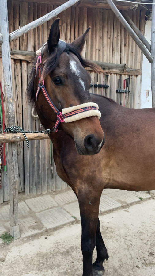 Sprzedam używany kantar HKM, rozmiar cob, w pełni sprawny. Miękki i przyjemny. Granatowo-różowy. Materiał od wewnątrz troszkę sprany, z zewnątrz wygląda świetnie, na sprzączkach ubytki farby, futerka w świetnym stanie. Napewno posłuży jeszcze wiele sezonów. Ma sporą regulację.