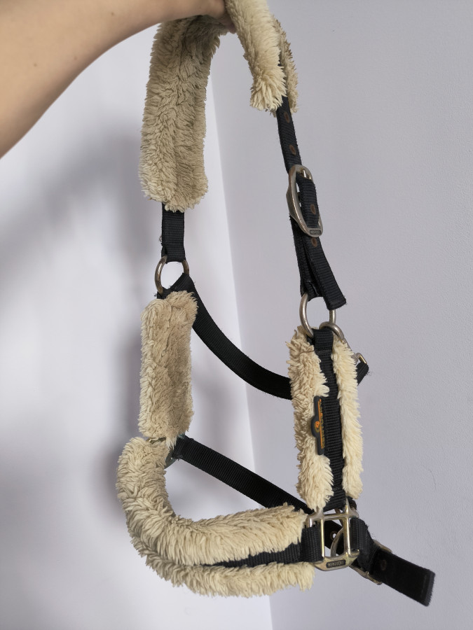 Kantar Kentucky Piękny. Czarny z jasnym futerkiem. Jest regulacja z jednej strony. Nie obciera pyska i ładnie się prezentuje mimo ze jest używany . Stan jest dobry do wyprania futerko. Trochę rdzy. Generlanie do wyprania a napewno jest posłuży bo ogólnie wad nie ma poza tymi przybrudzeniami. Rozmiar COB