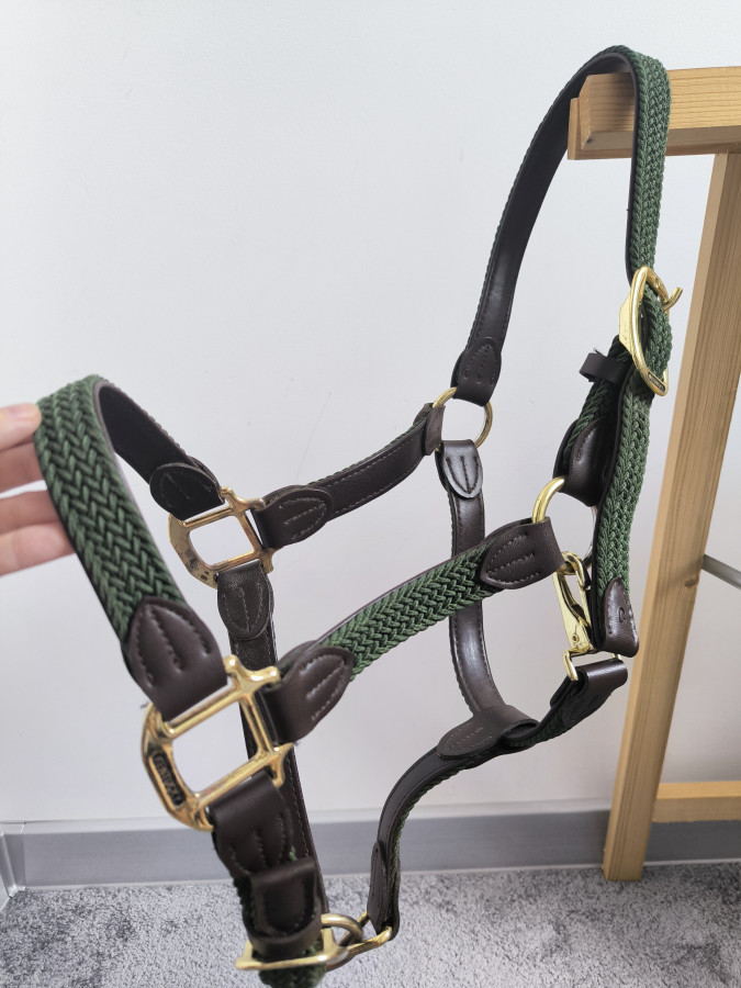 Elegancki skórzany kantar Kentucky zdobiony nylonową plecionką.