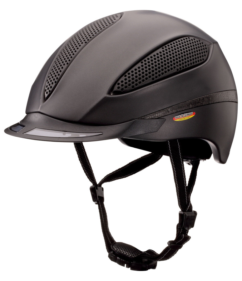 Najwyższej klasy kask Felix Bühler - wyprodukowany w Niemczech. Super lekki kask o sportowym kroju z doskonałymi właściwościami wentylacyjnymi dzięki trzem dużym wlotom powietrza. Niezwykle dobre dopasowanie i wyjątkowo lekkie, dzięki czemu kask nie jest już zauważalny podczas jazdy. Ponadto kask ma sprawdzoną 3-punktową regulację rozmiaru. Elastyczny kompozyt powłoki zewnętrznej i wewnętrznej dzięki technologii maxSHELL (zgrzewanie na zimno). Plastikowe okulary z ochroną UV są wbudowane w daszek hełmu, co znacznie zwiększa zasięg widzenia podczas jazdy. Podszewka jest wyjmowana i można ją prać. Kask jest zgodny z aktualnie obowiązującym standardem kasku.