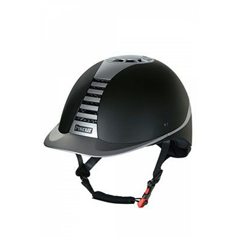 kask wykonany przez firmę PIKEUR to perfekcyjne połączenie bezpieczeństwa i nowoczesnego, aerodynamicznego kształtu. 4 punktowe zapięcie gwarantuje bezpieczeństwo oraz wygodę. Dodatkowym atutem jest elastyczny daszek oraz ochrona potylicy.