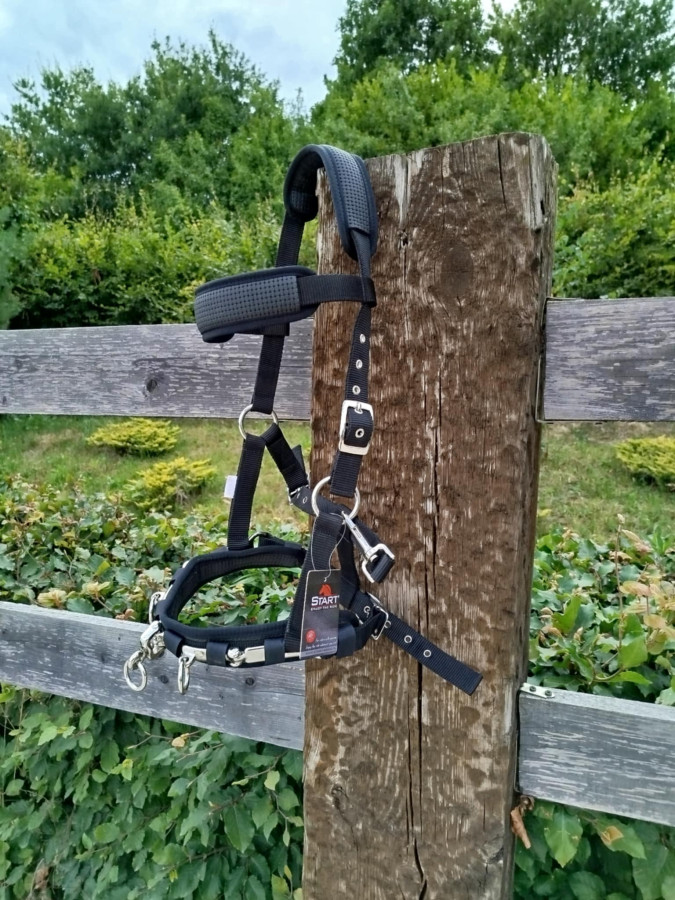 Regulowany na pasku potylicznym, podgardlu oraz nachrapniku.
