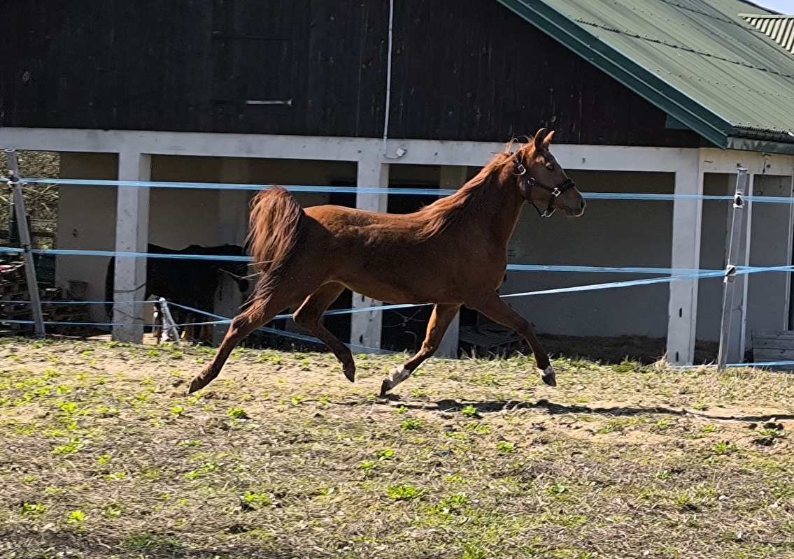 Klacz czteroletnia nie zajeżdżona z rewelcyjnym ruchem, ojciec Sylwan/Wojsław, matka Demonza/Fs Bengali. Nie miała kontuzji, zdrowa, padokowana. Cena obowiązuje przy zakupie dwóch klaczy arabskich.