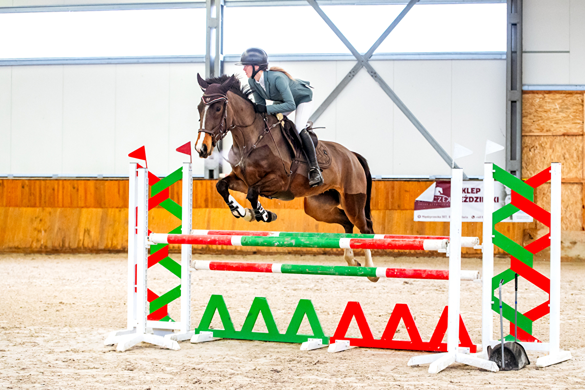 Sprzedam świetną klacz do sportu. Ma 163 cm wzrostu i w tym roku skończyła 5 lat. Cechuje się ogromnym sercem do skoków, skacze chętnie, dokładnie, niczego się nie boi. Startowała do klasy P z możliwoscią na więcej. Na zawodach zachowuje się dobrze, straszne są jej nowe rzeczy. Dobrze się prowadzi, nada się dla mniej doświadczonej osoby. Jest zdrowa z małą wadą niewykluczającą ze sportu, nie chorowała. Klacz wrażliwsza na dotyk, nie przepada za aktualnym kowalem.