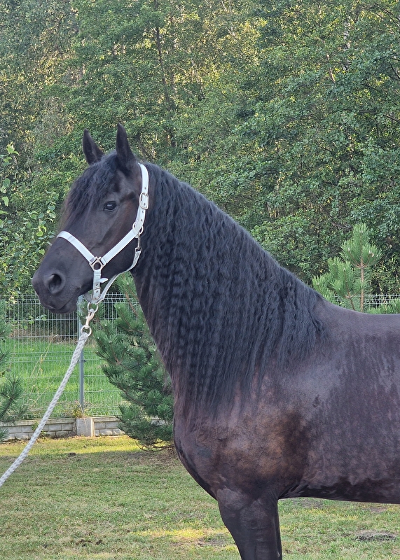 Sprzedam klacz fryzyjska, o wspanialej budowie i ruchu, na przegladzie hodowlanym otrzymała najwyższą pierwszą premię, która jest wpisana do paszportu klaczy. Klacz jest nauczona współpracy z człowiekiem, grzeczna przy kowalu. Świetny prospekt na matkę i konia użytkowego.
