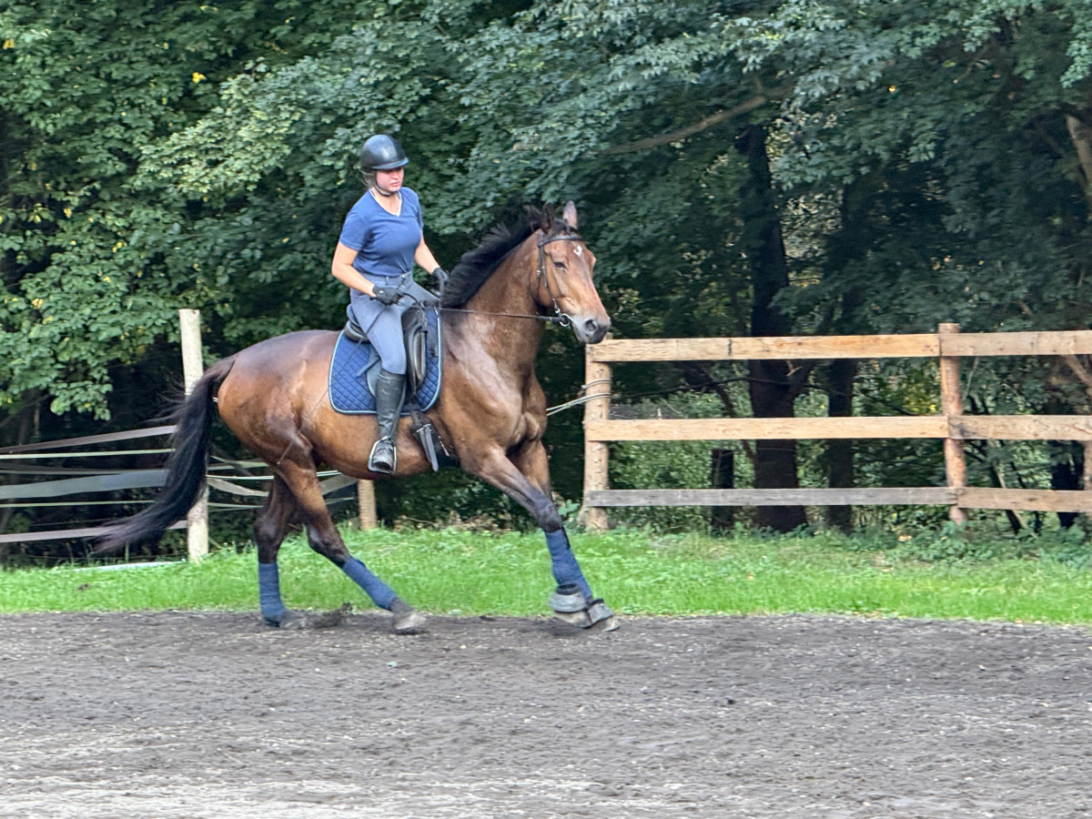 Aktualnie trening skupiony bardziej na pracy ujeżdżeniowej i drągach (zmiana siodła na ujeżdżeniowe dopasowane przez saddlefittera).