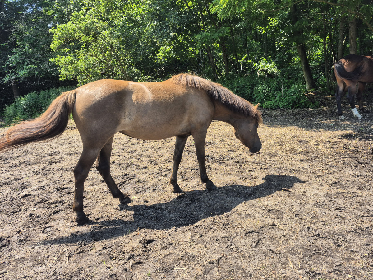 Sprzedam 4 letnia klacz huculska. Klacz jest zajeżdżona, u poprzedniego właściciela chodzila w bryczce. Aktualnie chodzi na lonzy i sporadycznie chodzi w teren w pojedynkę. Klacz raczej dla osoby doświadczonej, lubi stawiać na swoim jak to hucuł, z racji trudnego "dziecinstwa" straszy zadem przy jedzeniu.