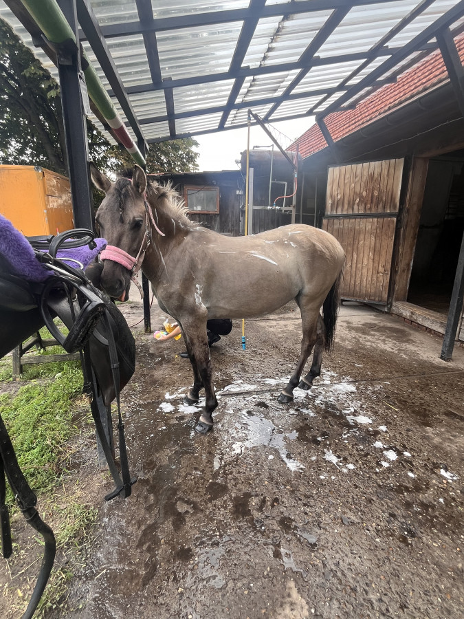 Klacz chodzi sama w teren jak i w siodle i w ręce czasem nie szanuje przestrzeni człowieka ale do wypracowania po więcej info pv. Woj.podkarpackie