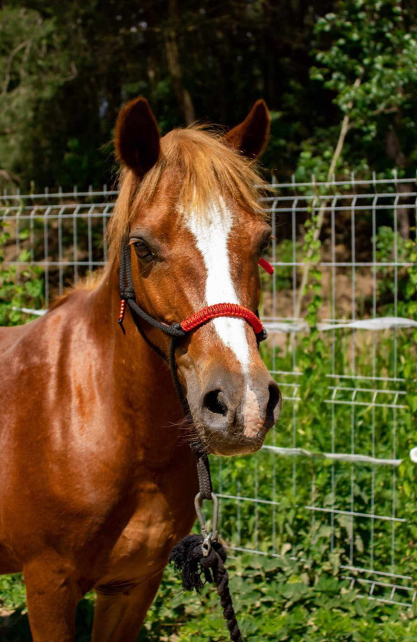 Sprzedam 17 letnia klacz rasy kuc walijski Gratka (po Anero od Gaja), klacz bardzo zadbana, regularnie fizjo, kowal, sadlefitter, zęby robione w styczniu. Maść kasztanowata, 79 pkt bonitacji, 131 cm wzrostu, nigdy przez ponad 2 lata u mnie nie chorowała, bezproblemowa, super wygląda na samym sianie. Przez większość swojego życia rodziła źrebaki, u mnie dała jednego pięknego źrebaka ( na drugim zdjęciu) i zaczęła pracować w szkółce, aktualnie ma przerwę z racji braku jeźdźca, chodzi w tereny oraz oprowadzanki. W tereny super koń, jest to jej ulubione zajęcie, zdecydowanie jest do tego stworzon, dostosowuje się do jeźdźca, potrafi jechać wolno pod początkującymi jak i zasuwać na prośbę jeźdźca:) na placu raczej koń dla doświadczonej osoby, step kłus pojedzie pod mniej zaawansowanymi jeźdźcami, jednak do dopracowania, u mnie od kilku miesięcy chodzi tylko w tereny, w galopie na placu czasem potrafi brykać i jest dość szybka, czasem coś skoczy ale to nie jej ulubiona forma treningów, u mnie raczej rzadko skakała. Oczywiście wszystko do wypracowania, u mnie w sezonie pracowała też na placu pod mniej zaawansowanymi, jednak większości moich jeźdźców z niej wyrosło i praktycznie u mnie nie pracuje poza terenami, z racji że to jej ulubiona forma jazd i niestety podjęłam decyzję o sprzedaży. Brała udział w zawodach 40-50 cm dwa razy, grzeczna na wyjazdach, super wchodzi do przyczepy, a nowe miejsca nie robią na niej wrażenia. Klacz uwielbia spacery, mizianie, grzeczna przy czyszczeniu, kowalu, podaje nogi. Dzieciaki zaplatają jej grzywę i ogon oraz uczą się na niej lonżowania, super chodzi na lonży i pod jeźdźcami i bez jeźdźca. Sprzedam tylko do domu w którym będzie stała z innymi końmi! Klacz stoi aktualnie na wolnym wybiegu i super jakby tak zostało, ale boks też zna:)