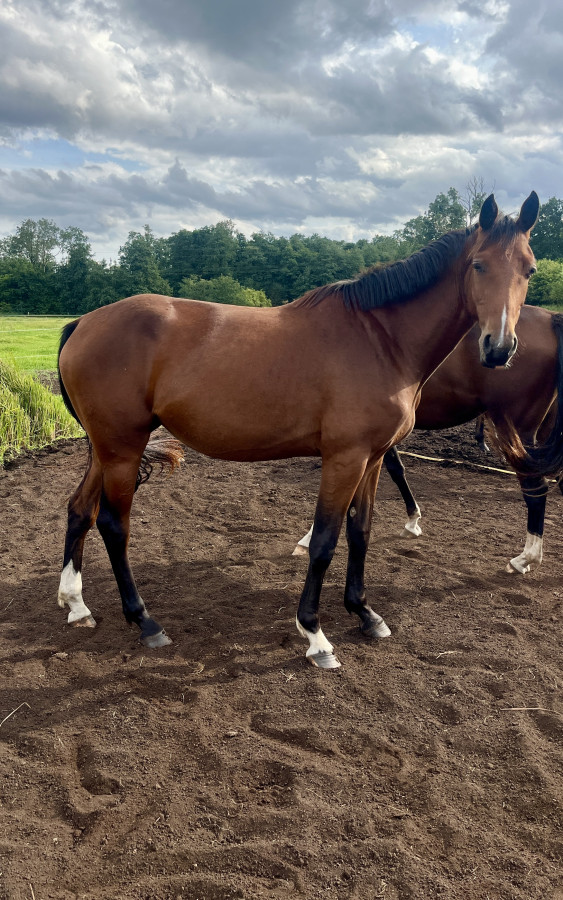 2,5 letnia Oldenburska poprawnie i porządnie zbudowana klacz na długich nogach będzie przyszłą gwiazdą parkurow ze względu na swój wyśmienity rodowód i osiągnięcia OBOJGA rodziców. Jej matka Zavira-A startowała z sukcesami na arenie ogólnopolskiej jak i międzynarodowej do 145cm pod wielokrotnym Mistrzem Polski Jackiem Zagor, który miał już szczęście zapoznać się z produktem hodowlanym od tej kobyły tj. 5-letnim walachem, gdzie jeździec jest pod podziwem charakteru, odwagi i skoczności konia na przeszkodach 120cm. Klacz osiągnie wzrost pomiędzy 169-172cm. Wychów pastwiskowy 24/7. Ojcem klaczki jest słynny Casino Berlin startujący do 160cm, który aktualnie jest czołowym ogierem w SK Racot. Koszt nasienia z przesyłkami wyniósł mnie prawie 2000€ 3lata temu. Sprzedaż z powodu redukcji stada, gdzie matka jest nadal czynna w hodowli (2025 dała premiowanego ogierka i ponownie zazrebiona).