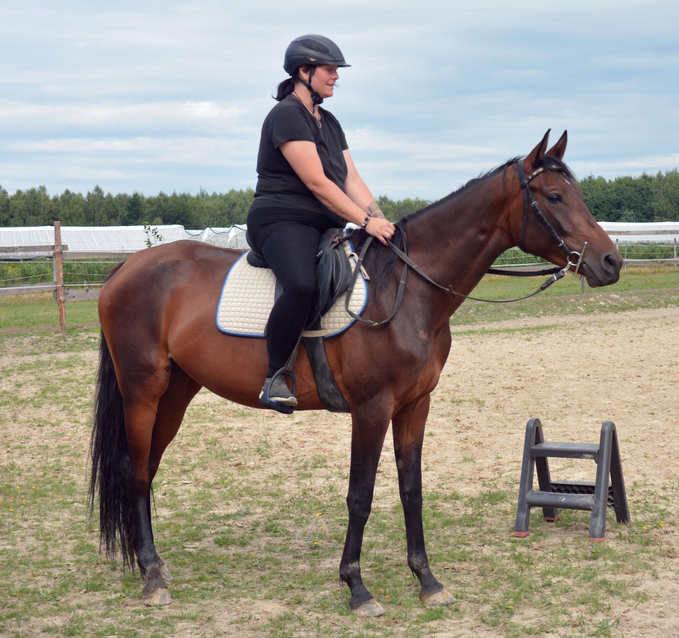Jeźdźca miała na sobie 3 razy, póki co stępowała z nim bez lonży. Miała zakładaną derkę zimową, szeleszczącą.
