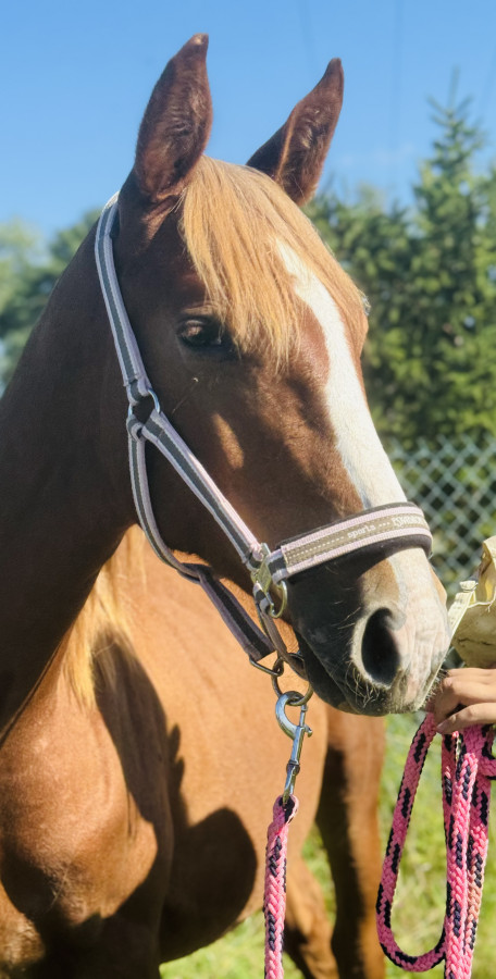 Sprzedam malowaną klaczkę po Kiss Of Gold. Klacz ma rok i dwa miesiące. Ojciec Kiss of Gold po Burberry/ Balou du rouet. Matka Wichura po Aktyw/Agar. Klacz z cudownym charakterem, bardzo przyjacielska, szczepiona, odrobaczana, werkowana. Padokowana 24h, bezproblemowa w obsłudze również przez dzieci.