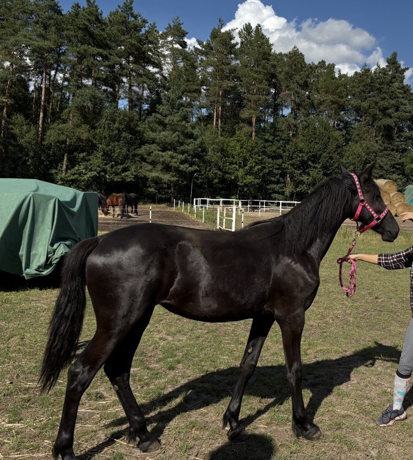 KIRI urodziła się 23.06.2024 roku w Naszej stajni. Choć ma w sobie 3/4 Fryza nie zapowiada się na masywną klacz. Raczej na typ sportowy. Obecnie jest zdrowym, energicznym źrebakiem, stabilnym emocjonalnie bez narowów i nałogów. Bezproblemowa. Regularnie odrobaczana i werkowana. Dobrze się z nią pracuje. Jest uważna i zrównoważona. Do nowych rzeczy podchodzi z ciekawością. Jednak jak na młodego konia przystało potrafi się przestraszyć. Nie boi się psów. Na padoku nie trzeba jej gonić. Sama przychodzi do człowieka. Prowadzimy małą stajnię bez szkółki jeździeckiej, więc Nasze konie nie są nadpobudliwe. Nie przejmują się traktorem czy TIRem. Codziennie z nami obcują. Cena nie jest niska, jednak nie dla osób szanujących własne bezpieczeństwo i komfort pracy z młodymi końmi. Do wglądu na miejscu jest matka i 3,5 letnia siostra. Konie z doskonałym charakterem.