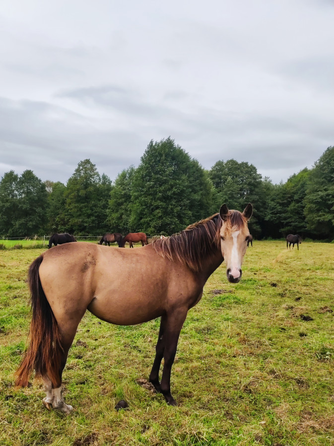 Od urodzenia na wolnym wybiegu ze stadem, ma zapewnione wszystkie potrzeby. Zdrowy fizycznie i psychicznie koń. Grzeczna przy kowalu, werkowana i odrobaczana regularnie. Aktualnie 145 cm docelowo ok 160 cn
