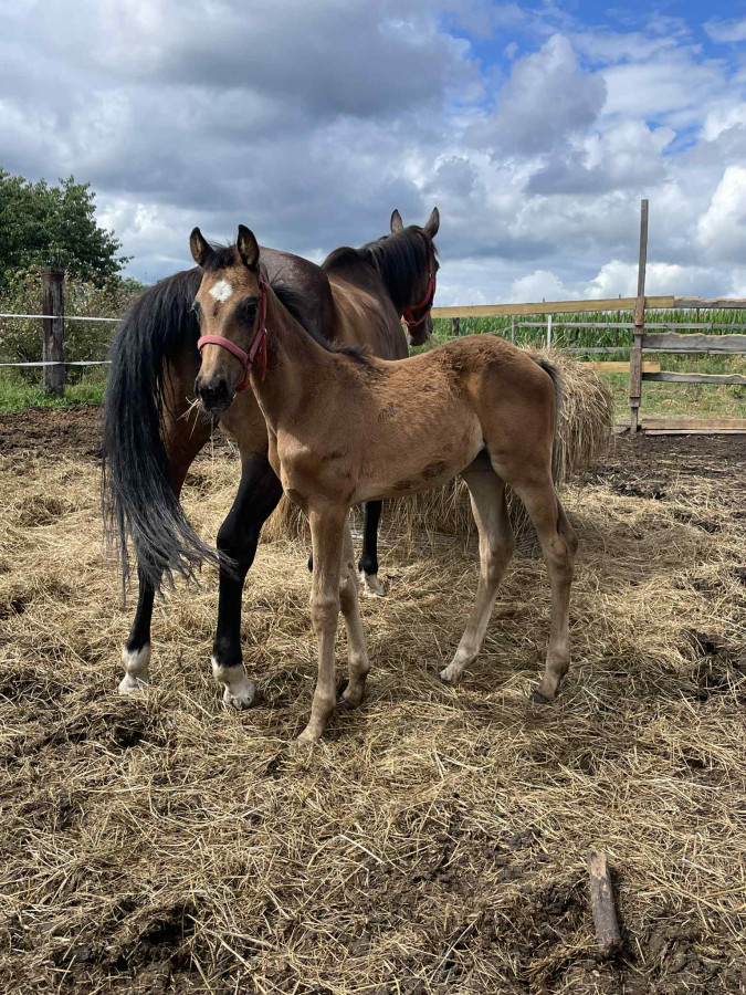 Klacz wielkopolska 19 letnia , 166 cm wzrostu , z matki po Magnes/Orkisz , z ojca po Seul/Livius/Leuchtfeuer. .Klacz spokojna , zdrowa bez wad , nie jest jej straszny weterynarz oraz kowal , chodzi w tereny ( nie boi się ruchu ulicznego . U nas jest od 5 lat i dała nam 3 zdrowe źrebaki . Wcześniej była w szkółce ( krótko bo pół roku i my ja kupiliśmy ). Sprzedaje wraz z córką ( 4 miesięczną ) , młodą to córka ogiera M Komandor po Ulco (KWPN)/Voltaire. Razem komplet 15000.