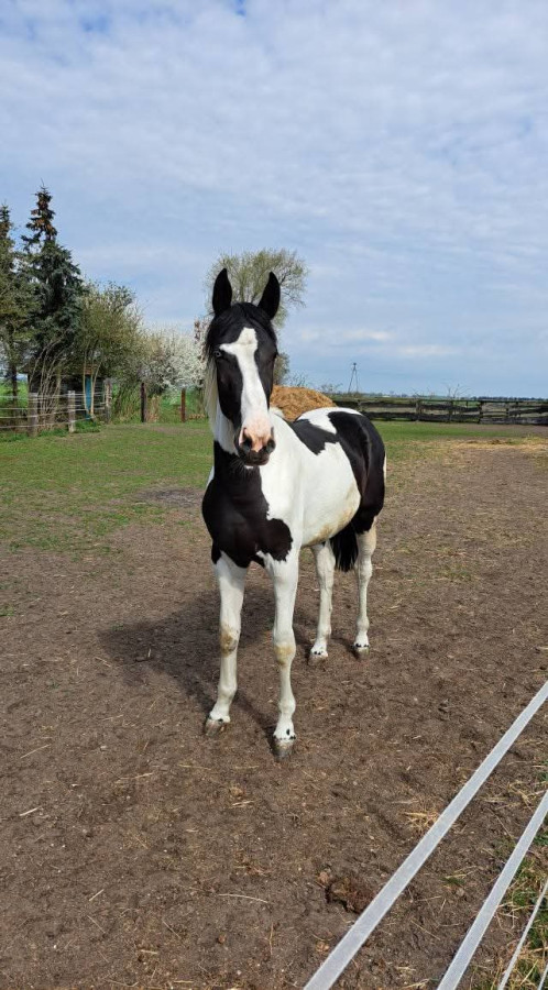 Sprzedam pięknie malowaną klacz. Jedno oko ma niebieskie, drugie brązowe, co dodaje jej uroku. Urodzona 05.2023 r. Rasa wielkopolska, z prawem wpisu do księgi. Wzrost obecnie 159 cm i nadal rośnie.