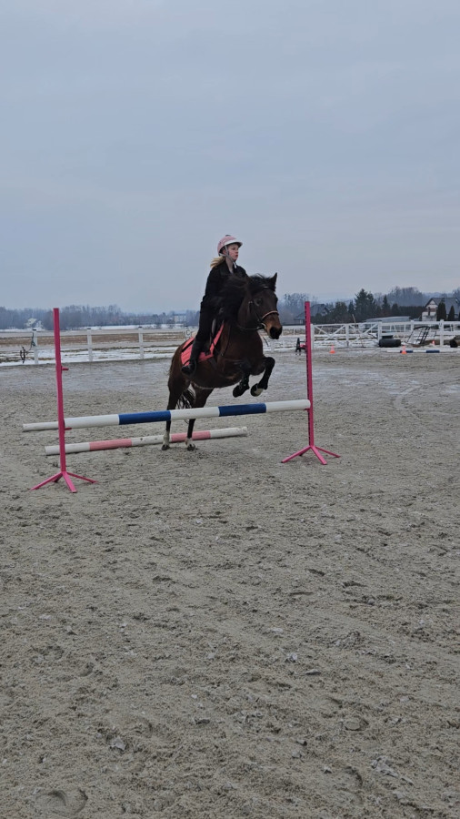7 letnia klacz huculska. 138cm wzrostu.Dla doswiadczonego i ambitnego jeźdźca, który chce sie rozwijac. Raczej nie do rekreacji. Do malego sportu- koń potrzebuje treningów dzień w dzień. Jak świeża to lubi pobrykać. Mega utalentowana i uwielbia skakać. Potrafi lotne zmiany nogi. Jesli pozna swojego czlowieka jest świeynym kompanem do wspólnych treningów. Potrzebuje jeźdźca z pewna ręką, któremu nie są straszne charakterki hucuła. W obejscu Anioł. Bezproblemowa przy kowalu. W regularnym treningu to TOP kucyk. Wraz z jej powrotem do ambitniejszej jazdy, cena będzie rosła. Jest na paszy gastro plus sieczka bo w przeszlosci miala zaleczone poczatki wrzodów. Świetnie pozytkuje pasze i głównie wystarcza jej dobrej jakosci siano. Tylko do dobrego domu. Nie zalezy mi na szybkiej sprzedaży. W ofercie razem ze sprzętem prócz siodła.