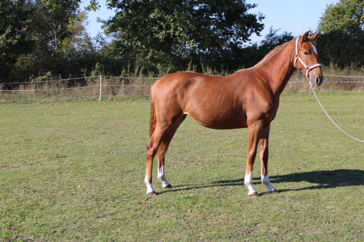 Na sprzedaż klacz urodzona 04/2024, o wybitnym rodowodzie skokowym - ojciec Umber van’t Zorgvliet (Tangelo van de Zuuthoeve x Emerald x Thunder van de Zuuthoeve), matka po Royal Vickenburgh (Burggraff x Stuyvesant xx) x Lux Z. Klacz zapisana do księgi Zangersheide, bardzo szlachetna, silna, skoczna, maści kasztanowatej. Do obejrzenia pod Poznaniem.