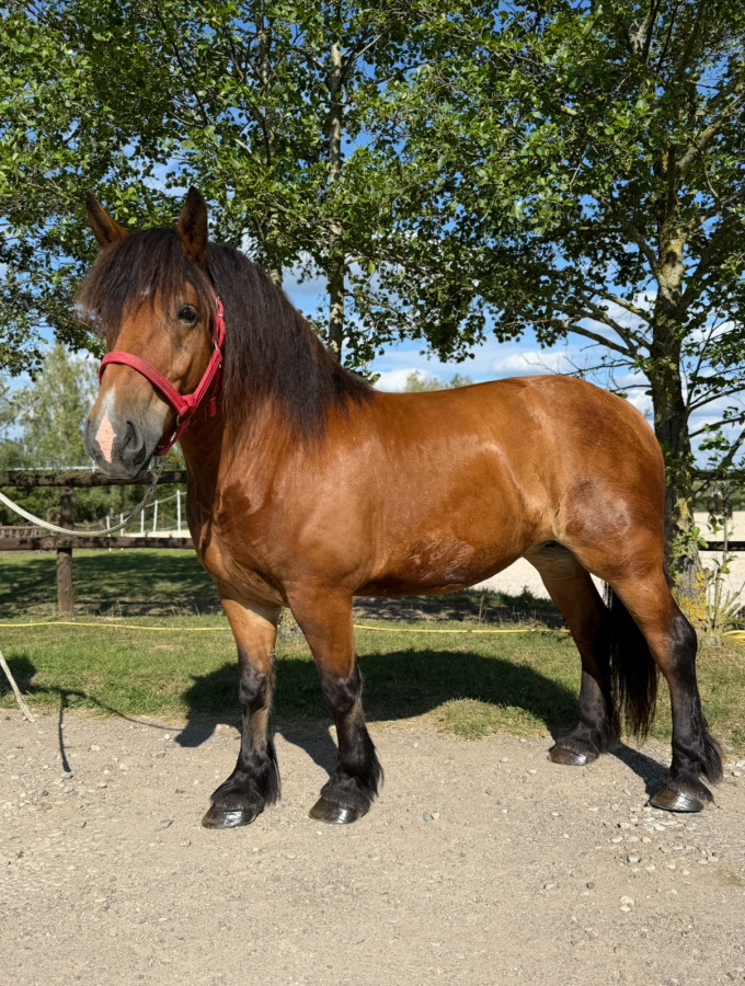 Jest bezpieczna w obejściu, grzeczna, chętna do współpracy. Jeździ pod siodłem, podaje wszystkie nogi, była również zaprzęgana do opony – więc zna podstawy pracy z ziemi i w zaprzęgu.