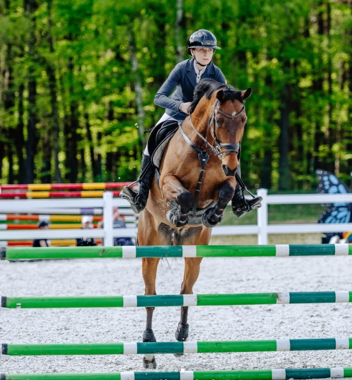 Ma za sobą liczne starty w zawodach regionalnych i ogólnopolskich, w tym w konkursach DiM. Regularnie startuje z sukcesami w klasie N (120 cm), a w treningu bez problemu pokonuje parkury do 130 cm. To koń gotowy na kolejne sportowe wyzwania z ambitnym jeźdźcem u boku. Niezwykle komfortowy w codziennej pracy. Chętny do współpracy – zarówno pod siodłem, jak i w obejściu. Bezproblemowy przy kowalu, goleniu, transporcie czy zabiegach weterynaryjnych. Pod stałą opieką fizjoterapeuty, w doskonałej formie, nigdy niekontuzjowany.