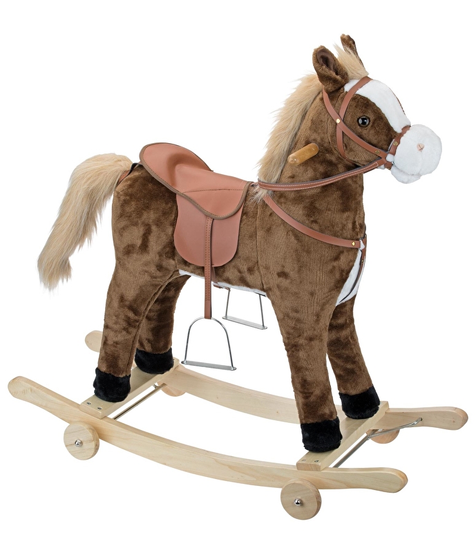 Koń na biegunach Ferdinand jest lojalnym towarzyszem wszystkich przygód. Przytulny koń z uchwytami do trzymania, prowadnicami i rolkami wykonanymi z lakierowanego drewna. Obracając rolki, koń na biegunach błyskawicznie zamienia się w toczącego się towarzysza zabaw. Zdejmowane siodło i uzda. Wzdycha radośnie i wydaje odgłosy galopu. Nośność do 60 kg. Całkowita wysokość 82 cm (wysokość siedziska 58 cm), długość 85 cm. Nie nadaje się dla dzieci poniżej 3 lat! Rży dopiero po włożeniu do brzucha 3 baterii AA 1,5 V. Używać tylko pod nadzorem osoby dorosłej.
