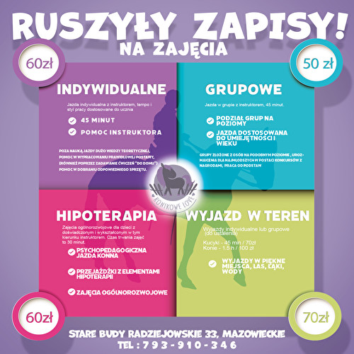 Kontakt pod numerem telefonu lub na fanpage na Facebooku KONIKOWELOVE