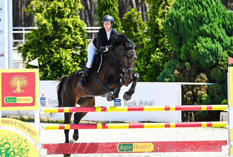Klacz startuje regularnie w konkursach do 130 cm, ma za sobą starty międzynarodowe. Posiada aktualne zdjęcia RTG do wglądu. Zdrowa, u mnie od 5 lat, nigdy nie kontuzjowana. Zaczęła trening skokowy dopiero w wieku 7 lat. Pierwsze zawody w wieku 8 lat. Wykupiona z hodowli, dała 3 źrebaki.