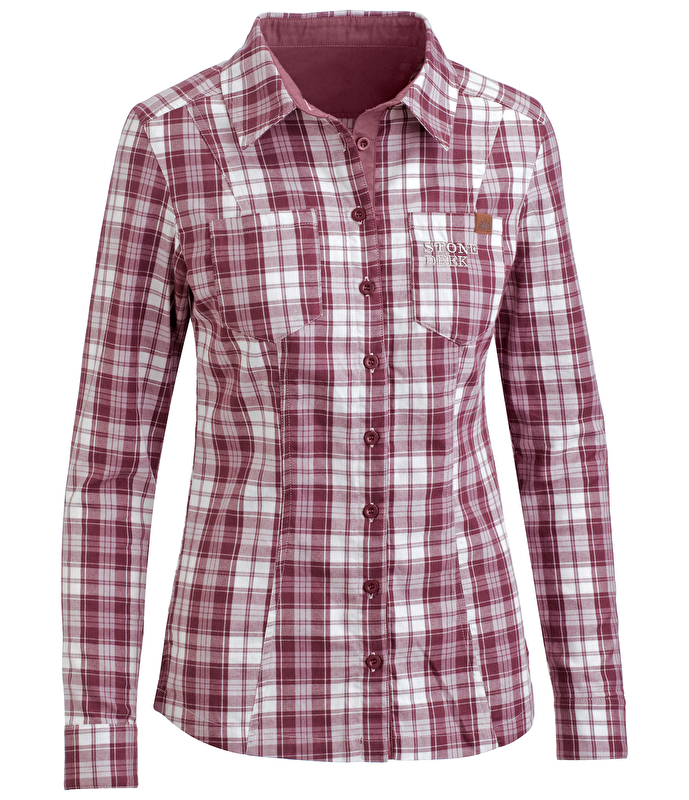 Szykowna bluzka w kratę o klasycznym, dopasowanym do sylwetki kroju z koszulowym kołnierzem, długimi rękawami i kieszenią na piersi. Kołnierz, zapięcie na guziki i mankiet są wykończone kontrastowym materiałem. 100% bawełna.