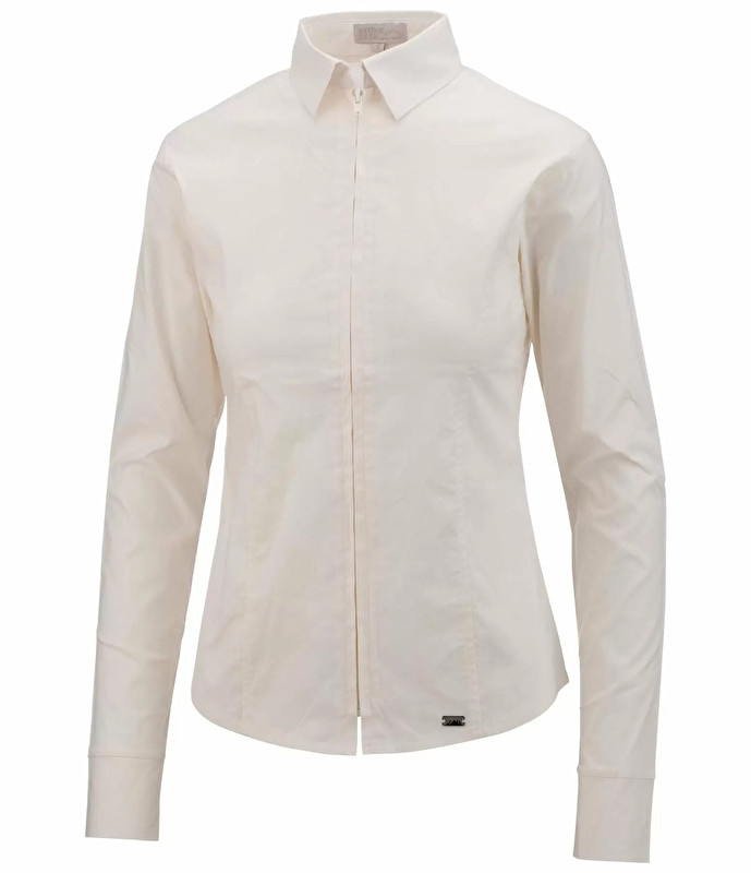 Praktyczna koszula konkursowa z zamkiem z przodu i kołnierzem koszulowym, dopasowany krój. Dzięki zawartości stretchu dopasowuje się do sylwetki jeźdźca . Wyjątkowo długi krój, dzięki czemu nie podjeżdża podczas jazdy. . 97% bawełna, 3% elastan.