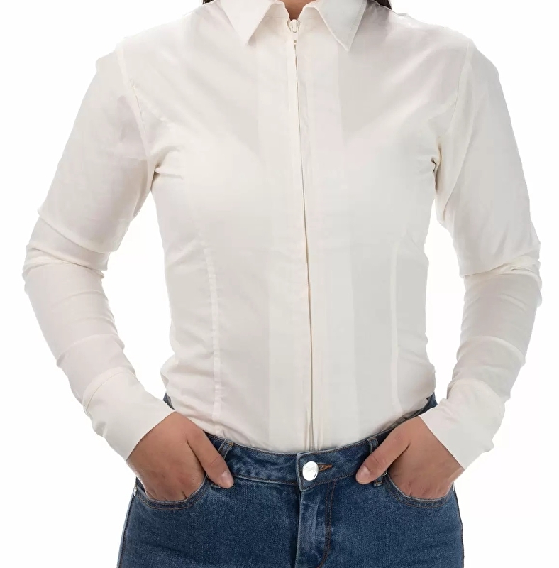 Praktyczna koszula konkursowa z zamkiem z przodu i kołnierzem koszulowym, dopasowany krój. Dzięki zawartości stretchu dopasowuje się do sylwetki jeźdźca . Wyjątkowo długi krój, dzięki czemu nie podjeżdża podczas jazdy. . 97% bawełna, 3% elastan.